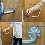 UNITY antimicrobial door pull handle is a patented design and built to open a latched swing door using forearm without “hand touching” in order to reduce germs or virus spreading / infection through hands transmission.
