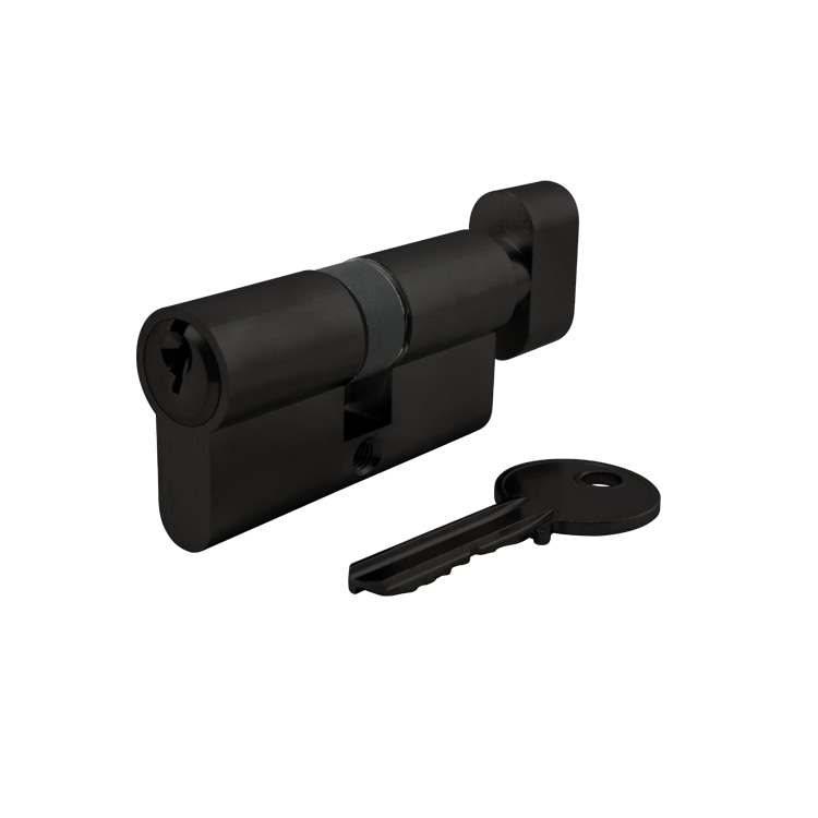 UNITY ECS3030TK-BK modern matte black lock cylinder with thumbturn is made of solid brass. Keyed operation from one side (outside) and thumb-turn operated from the other side (inside).