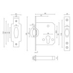 – MLC107-55 roller bolt mortice dead lock is compatible with bolt through escutcheons of 38mm centers